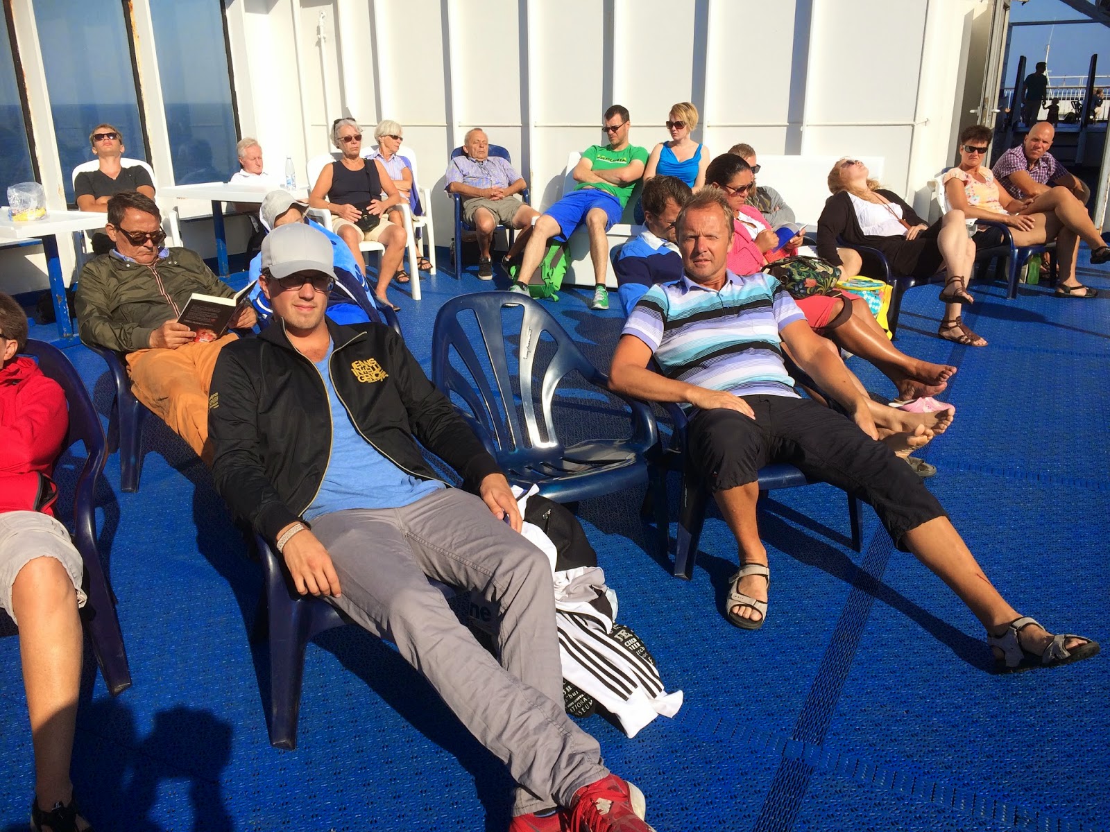 Visst är det härligt när hela havet ligger lugnt och man kan njuta på däck.